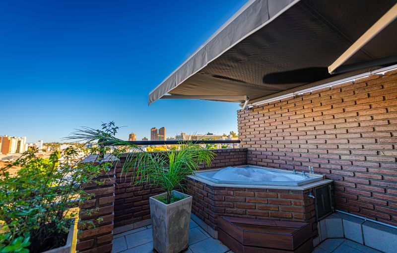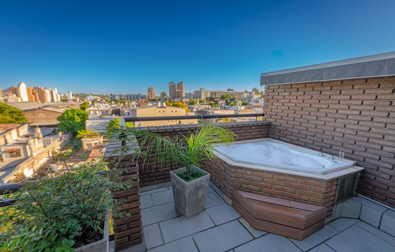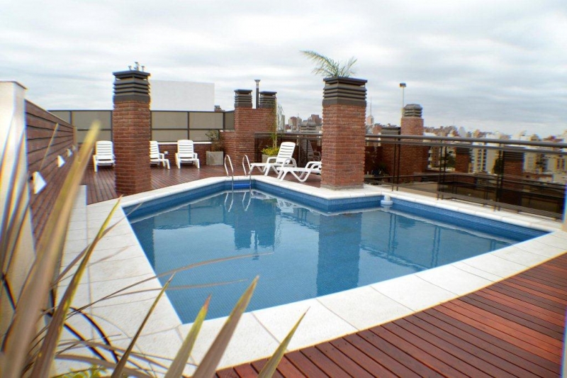 Contamos con pileta (no climatizada) y solarium en nuestra terraza, abiertos durante todo el año, donde nuestros huéspedes podrán relajarse y disfrutar la vista de la ciudad.